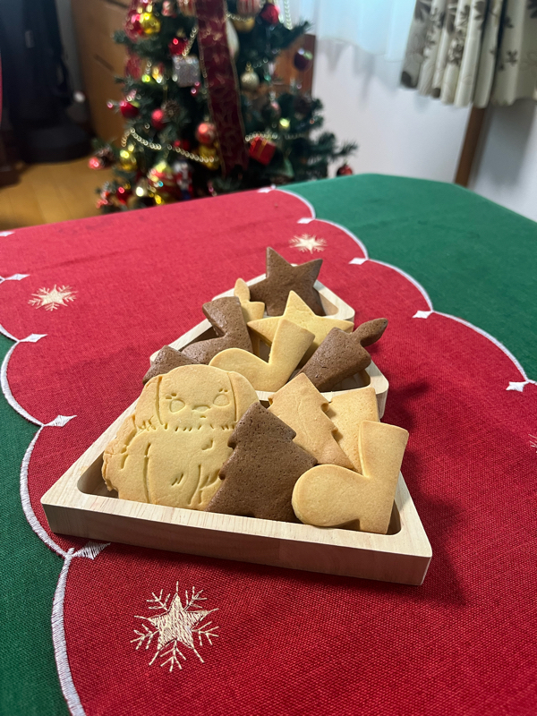 お土産に持っていたクリスマスクッキー。ブラン君のクッキー型はななちが3Dプリンタで作ったもの。3Dデータ作成にはFusion360を使用している。ここ数年でかなり3Dプリンタを使いこなしている。